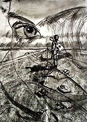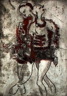 These etchings were made on the copper plate, ink printed and hand painted in edition of 1. Printed copies can be made free of charge with acknowledgment to this author.