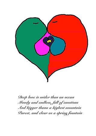 Love story is a saga of various kinds of love. Computer drawn and painted images , based on heart symbolic shape. Can be printed in any size, free of charge but with acknowledgment to this autor.